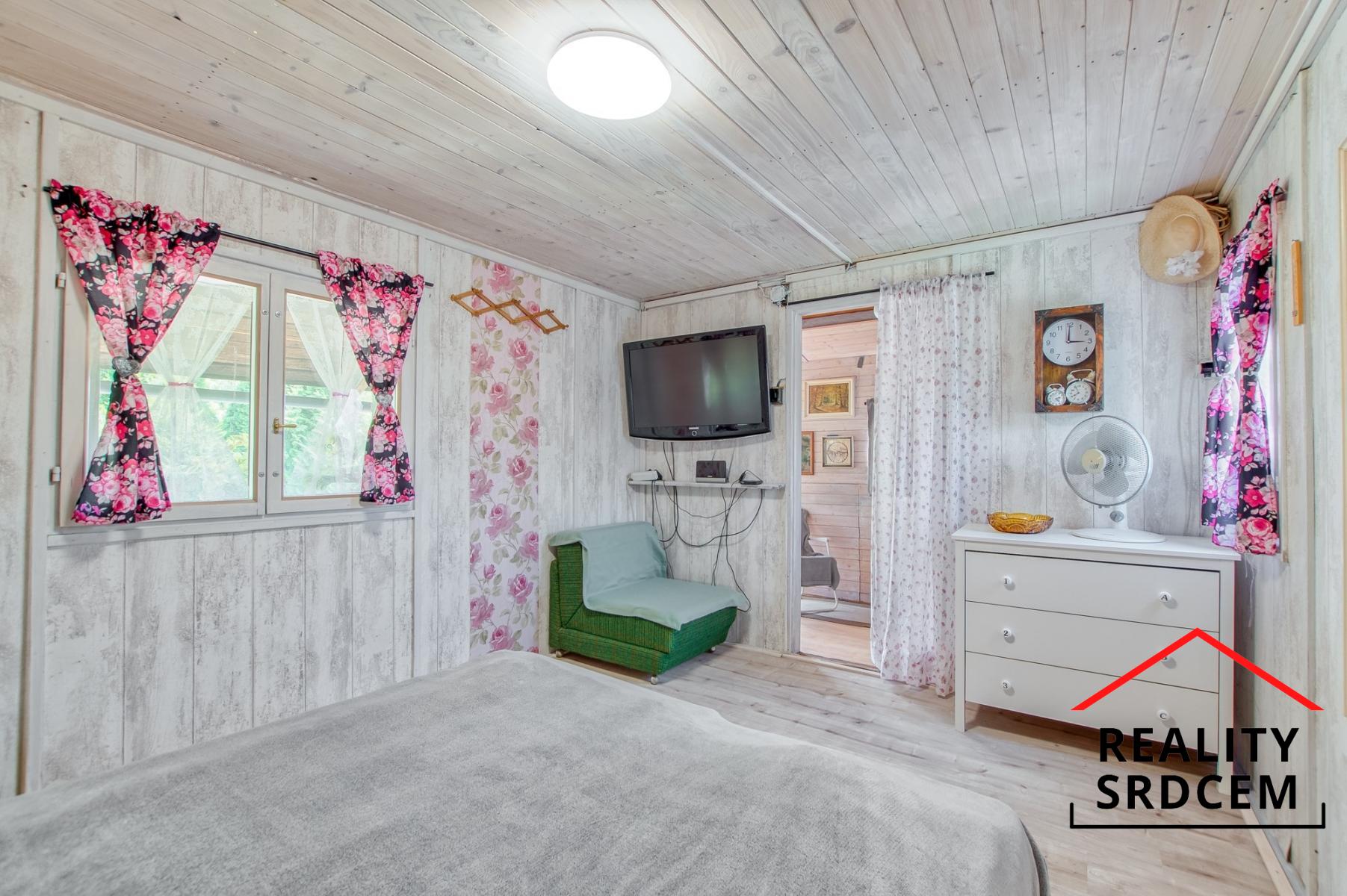 Při vstupu do chaty máte po své levé straně prostornou pergolu s grilem a posezením, kde si můžete něco dobrého ugrilovat, posedět s rodinkou či přáteli, a při špatném počasí se boční strany pergoly dají zakrýt. Dále pak je zde samostatná koupelna - teplá voda řešena bojlerem, samostatná kuchyň s varnou plynovou deskou připojenou na propanbutanovou láhev, lednice, mikrovlnná trouba, a vytopit zde můžete pomocí krbu. V patře se nachází útulná ložnice.