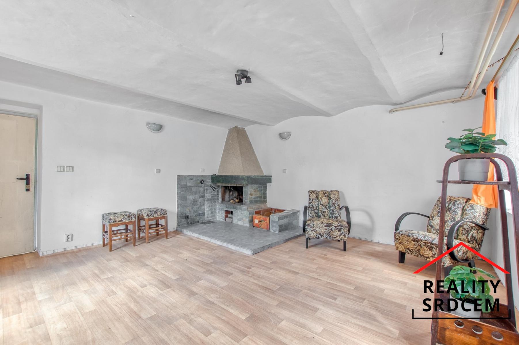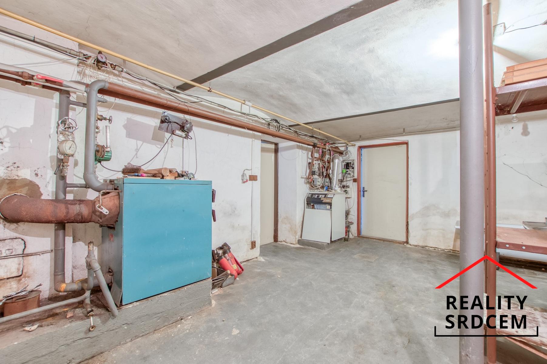 suterén s dalšími využitelnými prostory včetně místnosti s krbem