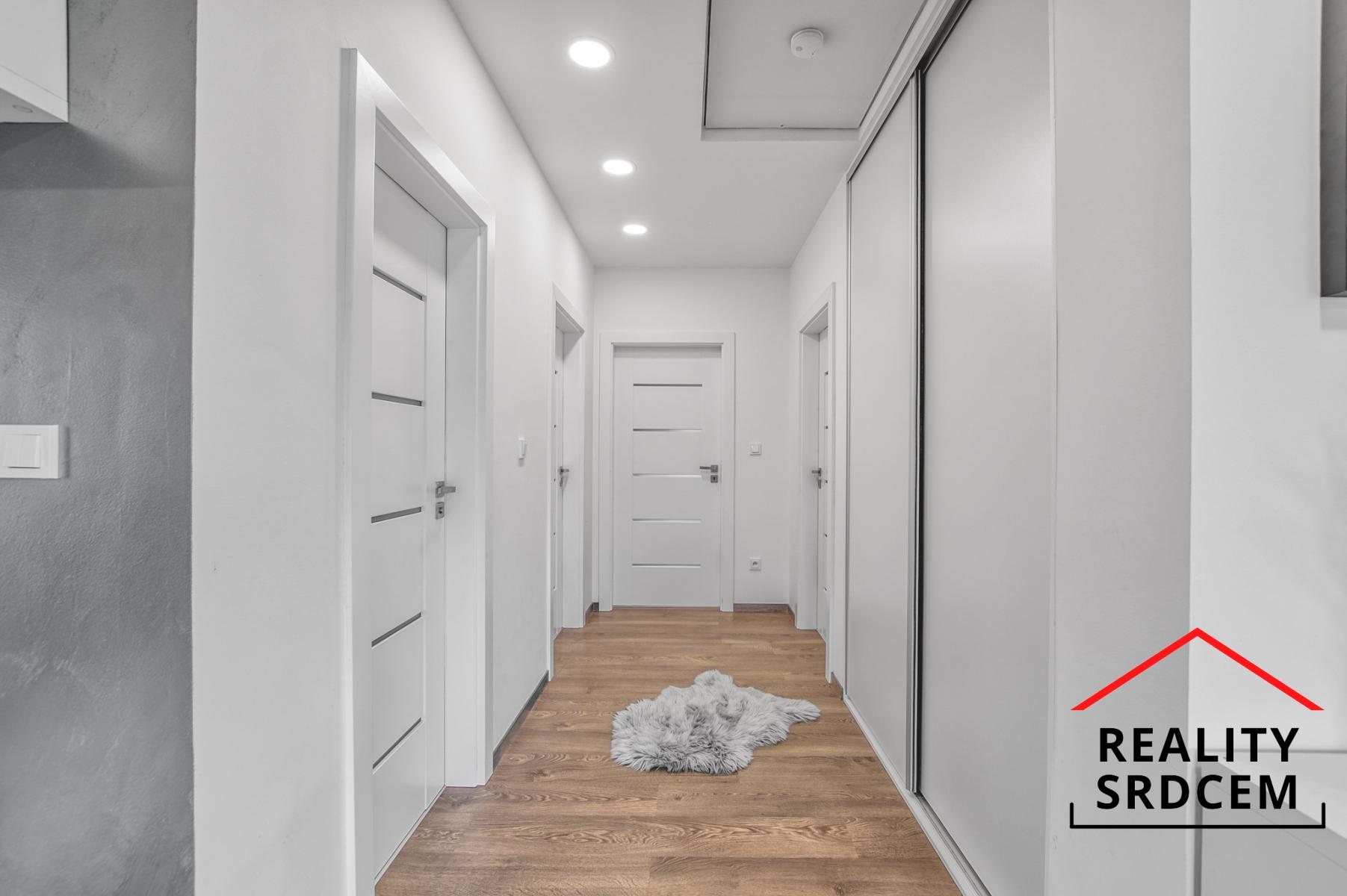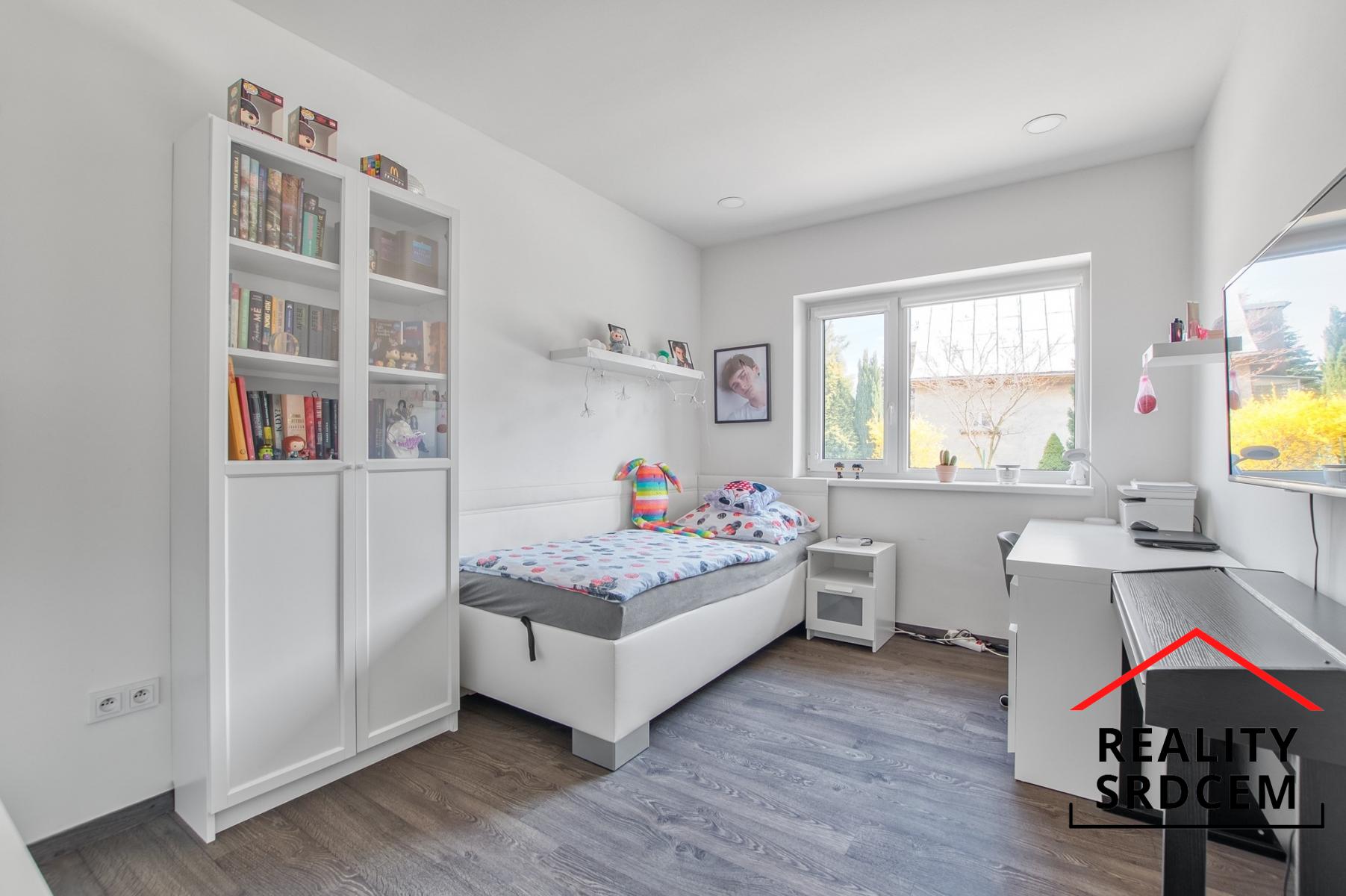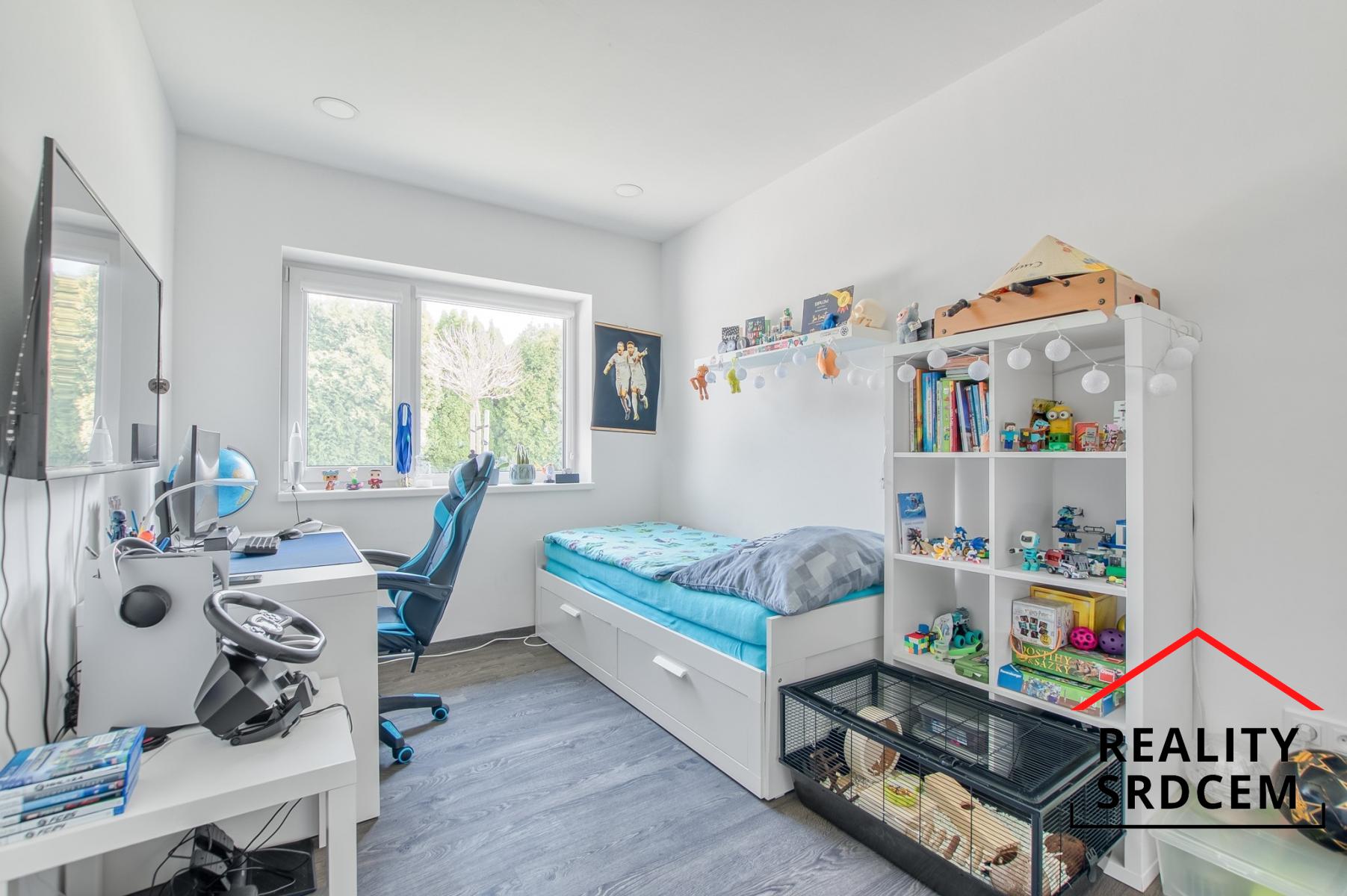 U vstupu je praktická předsíň, na kterou navazuje vstupní chodbička s vestavěnou šatní skříní. Dominantu tohoto domu tvoří obývací pokoj spojený s kuchyní o velikosti 59 m2 - prostě centrum rodinného života, kde nechybí krb, klimatizaci ani výstup na terasu. Dva dětské pokoje jsou samostatně řešené a mají vlastní koupelnu s vanou i toaletou. Ložnice je zázemí Vašeho klidu. Nechybí šatna, ani vlastní koupelna se sprchou a toaletou, a místa je tady dostatek.