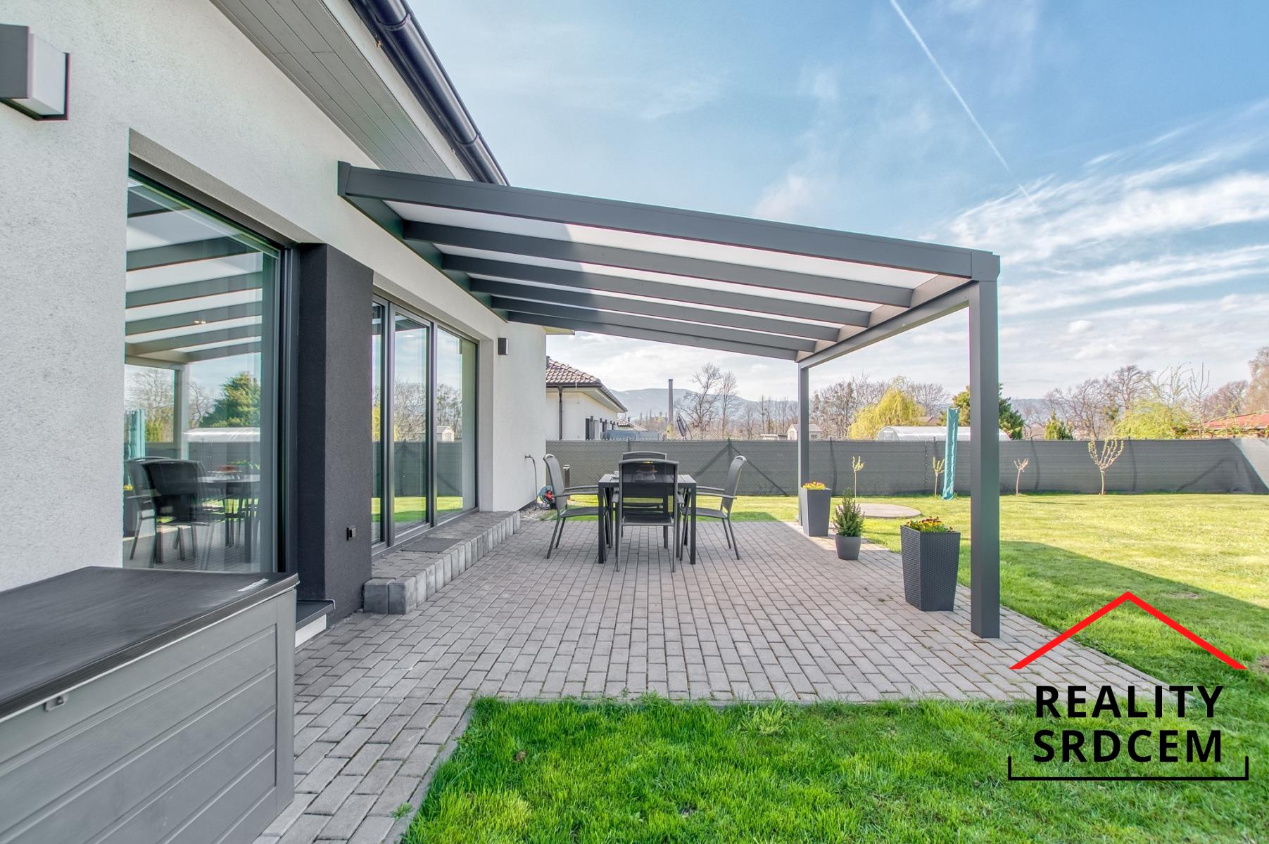 Pozemek? 777 m2 je tak akorát na zábavu i údržbu. Zastavěná plocha domu je 138 m2, dále je zde kryté stání, zastřešená terasa i zahradní domek. A jestli plánujete bazén nebo venkovní hřiště pro děti, pořád je tady dost místa.