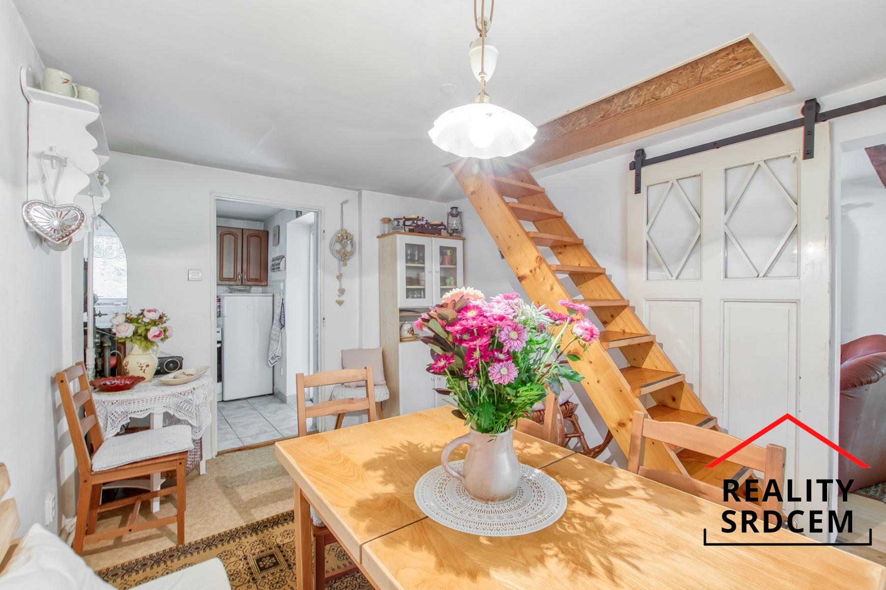 Začneme pozemkem - toho je tady 574 m2 a je rozdělen do 3 částí - první slouží jako parkovací plocha (3-4 auta bez komplikací), dále je zde svah tvořící přírodní bariéru a soukromí a rovinatá část pozemku na které najdeme dům, posezení a zahrádku. Ideální velikost na údržbu a klid. U vstupu do domu je menší zádveří, na které navazuje průchozí vybavená kuchyň, dále útulná prostorná jídelna a nechybí obývací pokoj s výstupem na zahradu. V přízemí ještě najdete ložnici, koupelnu s toaletou a dílnu se samostatným vstupem.