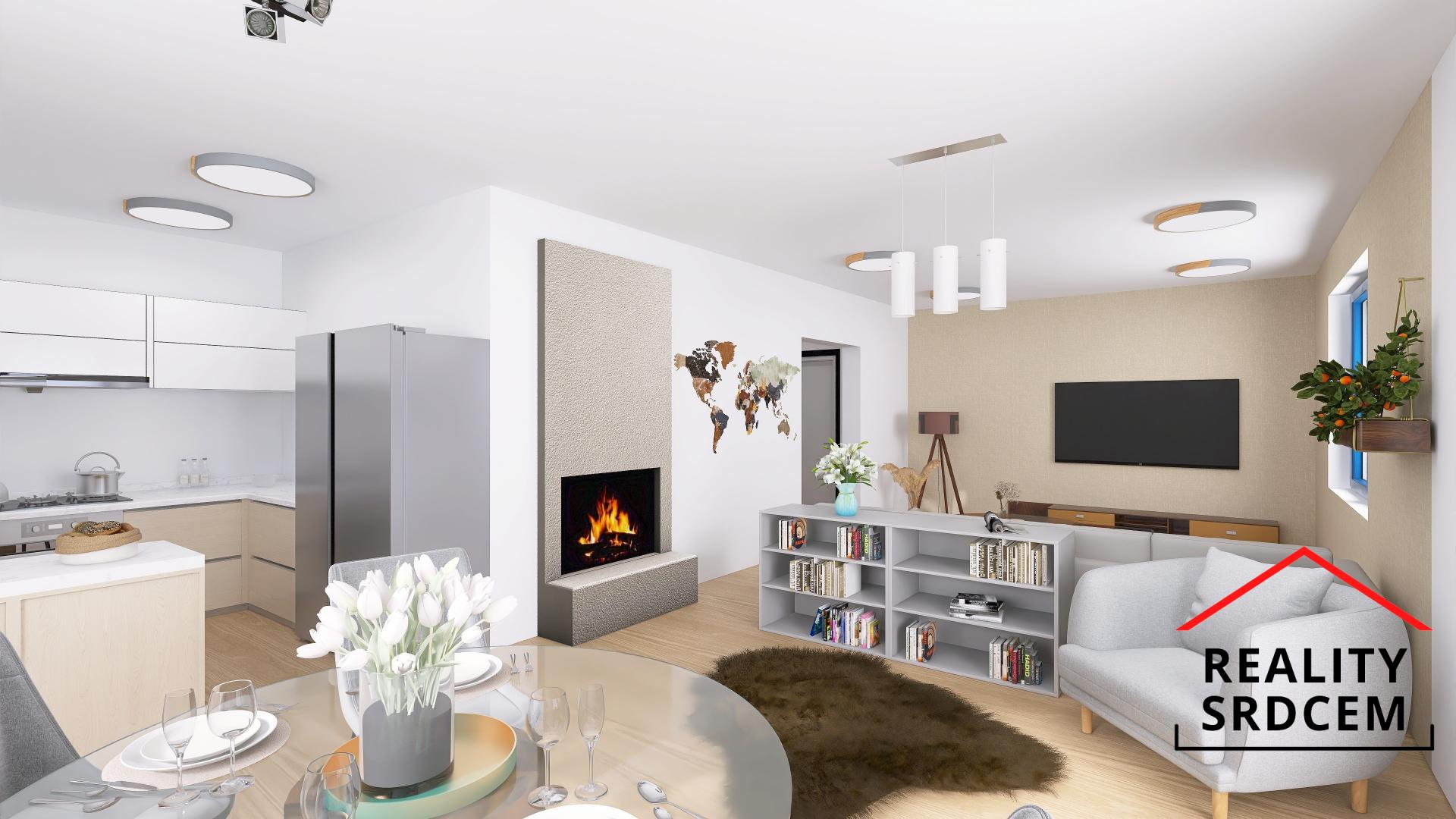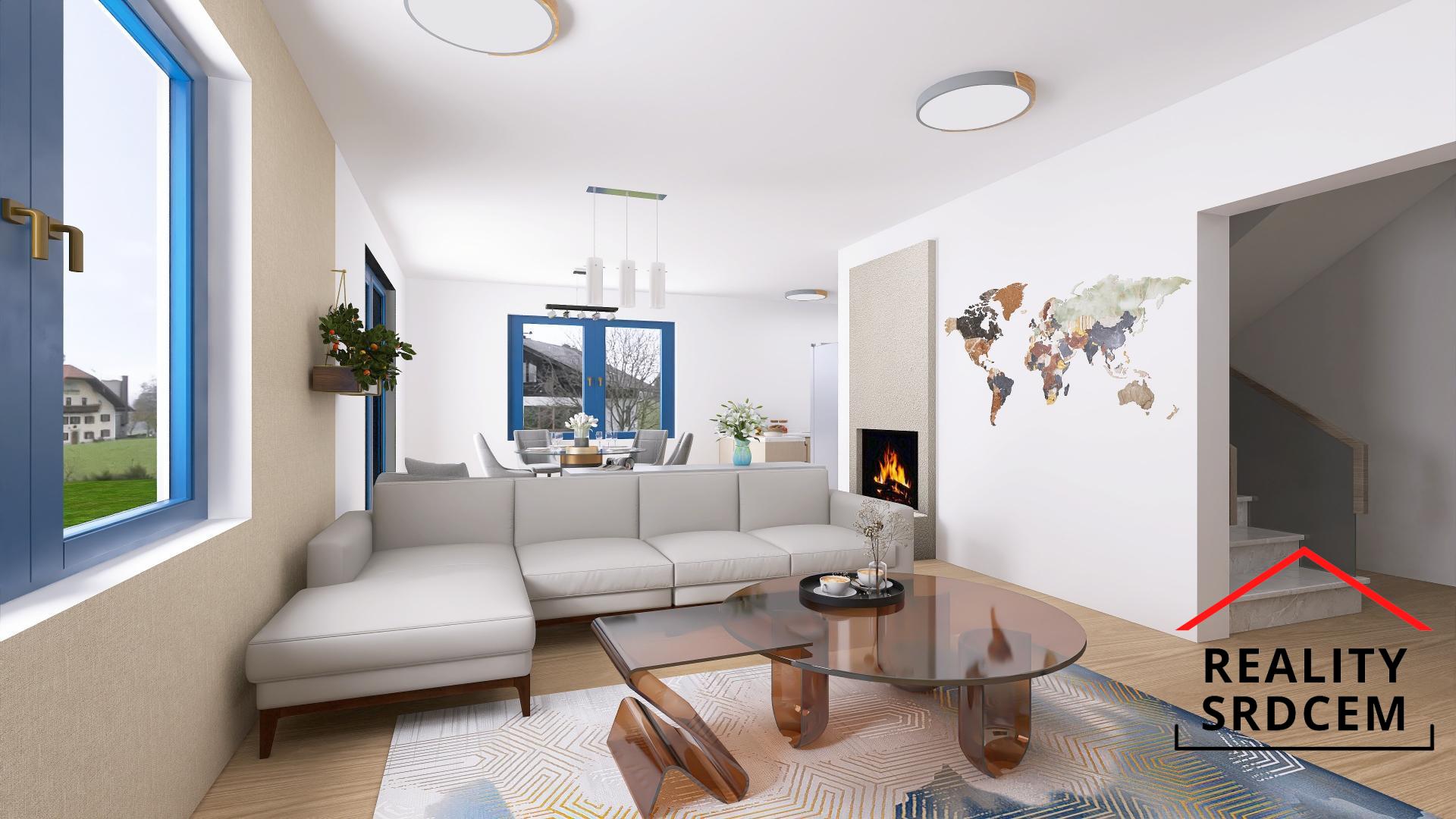 V 1. nadzemním podlaží o velikosti 116 m2 se nachází předsíň, pokoj pro hosty, koupelna s wc, šatna, technická místnost, dále pak prostorný obývací pokoj s jídelnou a kuchyní, kde budete mít dostatek místa na vše, protože tady najdete přes 50m2 užitné plochy. V obývacím pokoji je příprava pro krb.