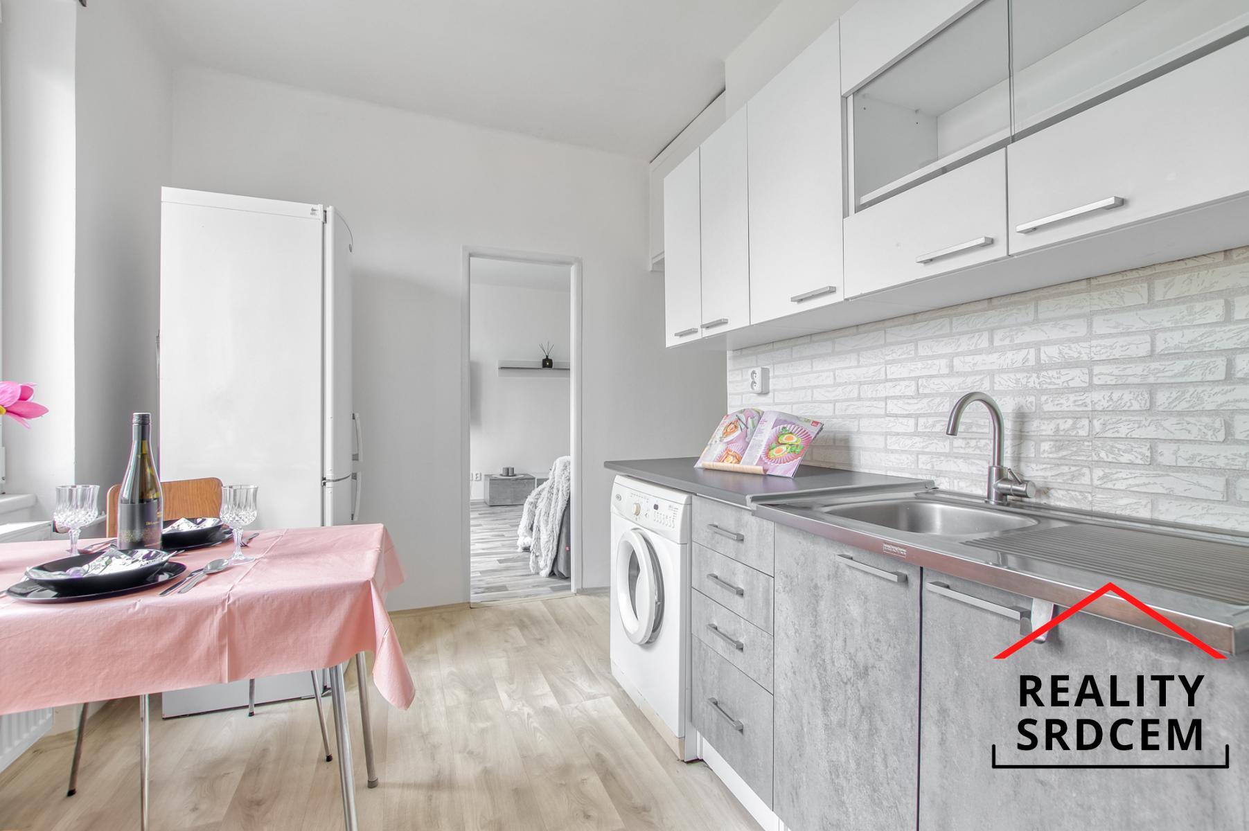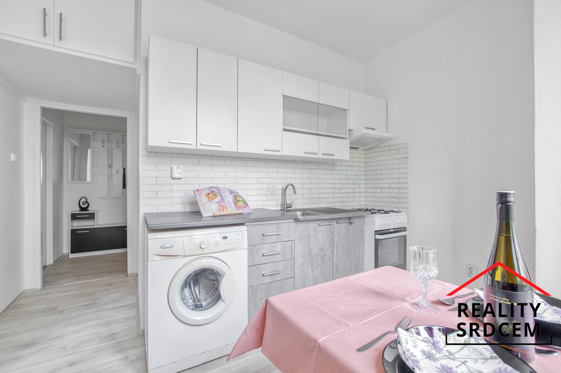 Interiér bytu prošel částečnou rekonstrukcí a působí velmi příjemně a útulně. Kuchyně je prakticky vybavená najdete zde kuchyňskou linku se spotřebiči včetně pračky, lednici i jídelní stůl se dvěma židlemi, takže si ranní kávu nebo společnou večeři můžete vychutnat hned od prvního dne. Praktickým bonusem je zděná spižní skříň, která poskytne dostatek prostoru pro uložení potravin.