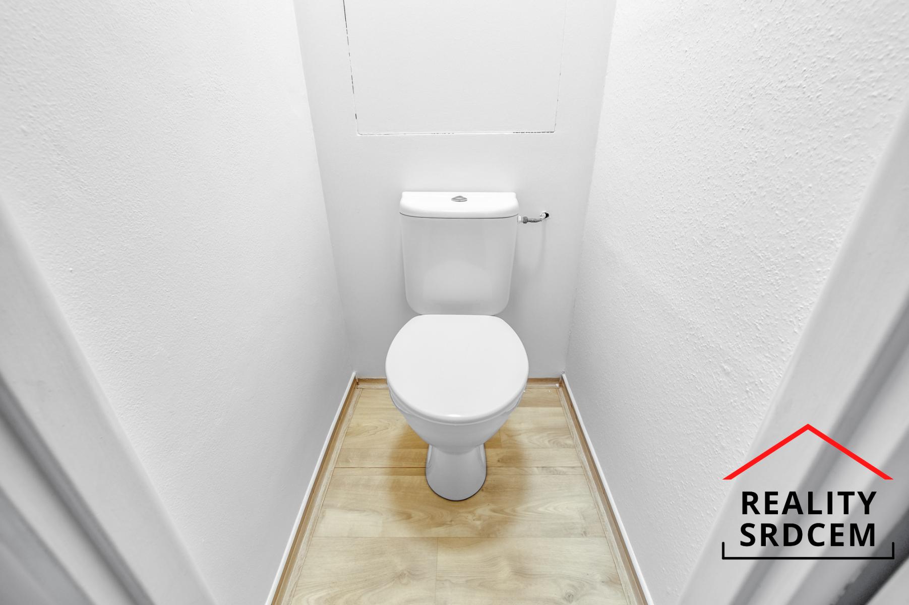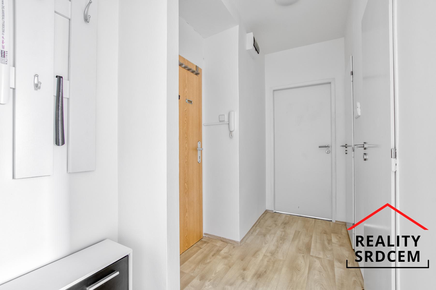 V předsíni najdete praktickou odkládací stěnu s botníkem. Podlahy v chodbě, kuchyni a na WC jsou z PVC.