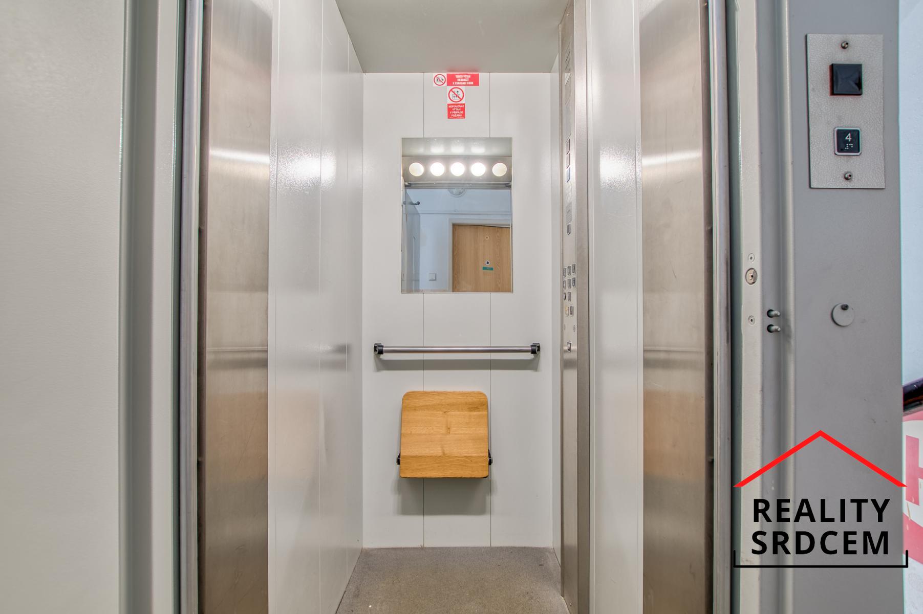 Byt se nachází v 5. nadzemním podlaží cihlového domu s výtahem. Můžete ho tedy využít, když se vám nebude chtít do schodů, nebo si dopřát krátké každodenní protažení.